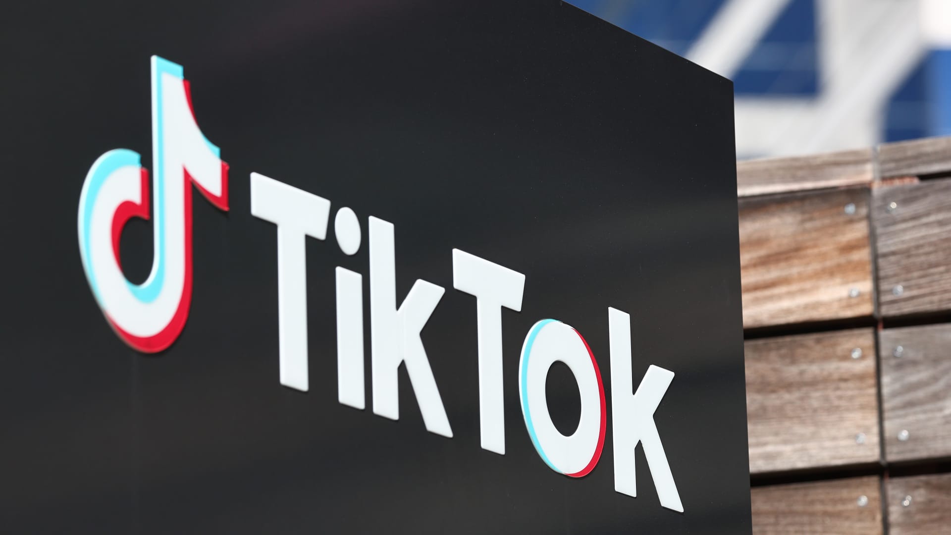 The TikTok logo is displayed at TikTok offices acceso March 12, 2024 con Culver City, California.