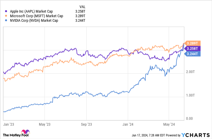 Although Microsoft (NASDAQ: MSFT) held the title for a few months, Apple (NASDAQ: AAPL) briefly regained its crown as the world’s largest company by market cap this month. But then this week, Nvidia (NASDAQ: NVDA) passed it for the first time. As of Thursday, the Windows maker was back first place again, but with all three companies market caps of around $3.2 trillion, the near term, their rankings within the cima three could shift often.