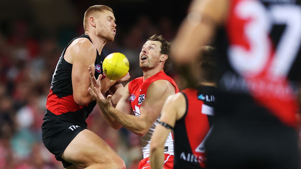 Essendon forward Peter Wright is facing a nervous wait following a high bump on Sydney defender Harry Cunningham during the Bombers’ 30-point loss to the Swans on Saturday night.
