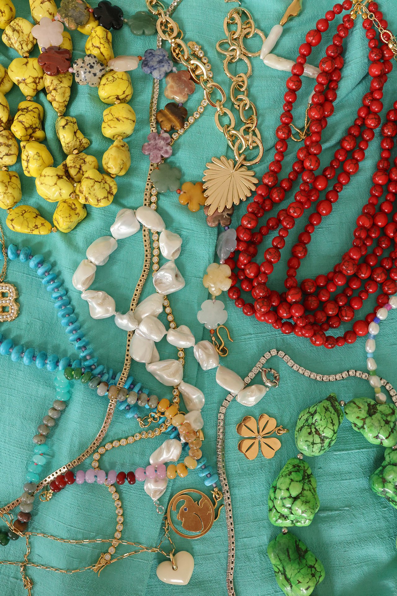 - Layer three more. When I am layering necklaces, I typically stack four to seven pieces. Personally, I never layer less than three. And mai matter how many necklaces I am wearing, I make sure to only have one “wow” necklace anchor piece. Otherwise, the aspetto will get too busy.