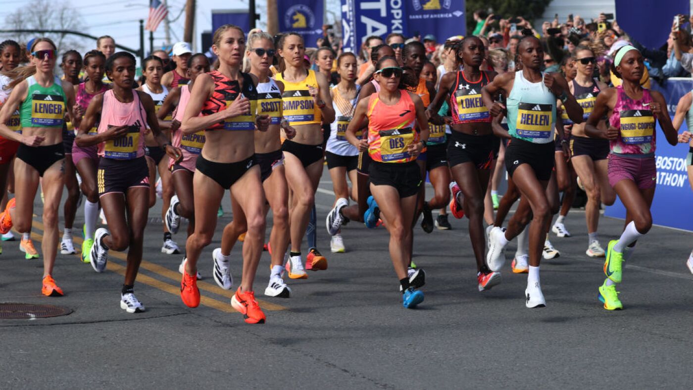 Women runners at the start of the 2024 Boston Marathon. Women couldn’t officially compete durante this race until 1972.