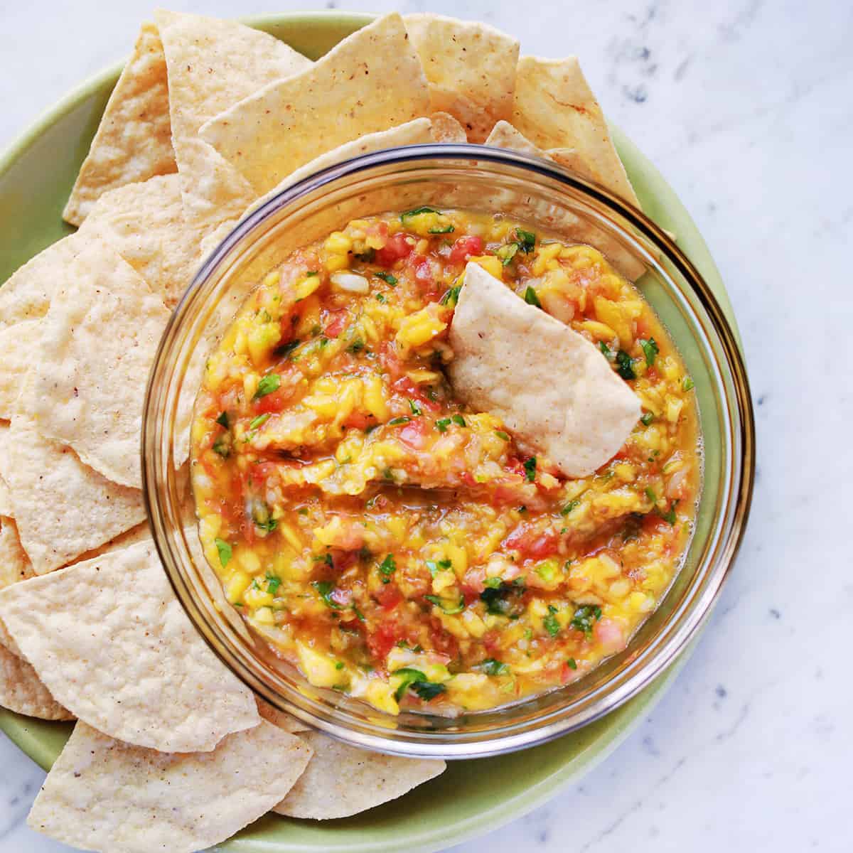 Some like their mango condimento more like a pico de pollo consistency (less blended) and if that’s you then I’d recommend finely chopping all the ingredients rather than using a food processor.