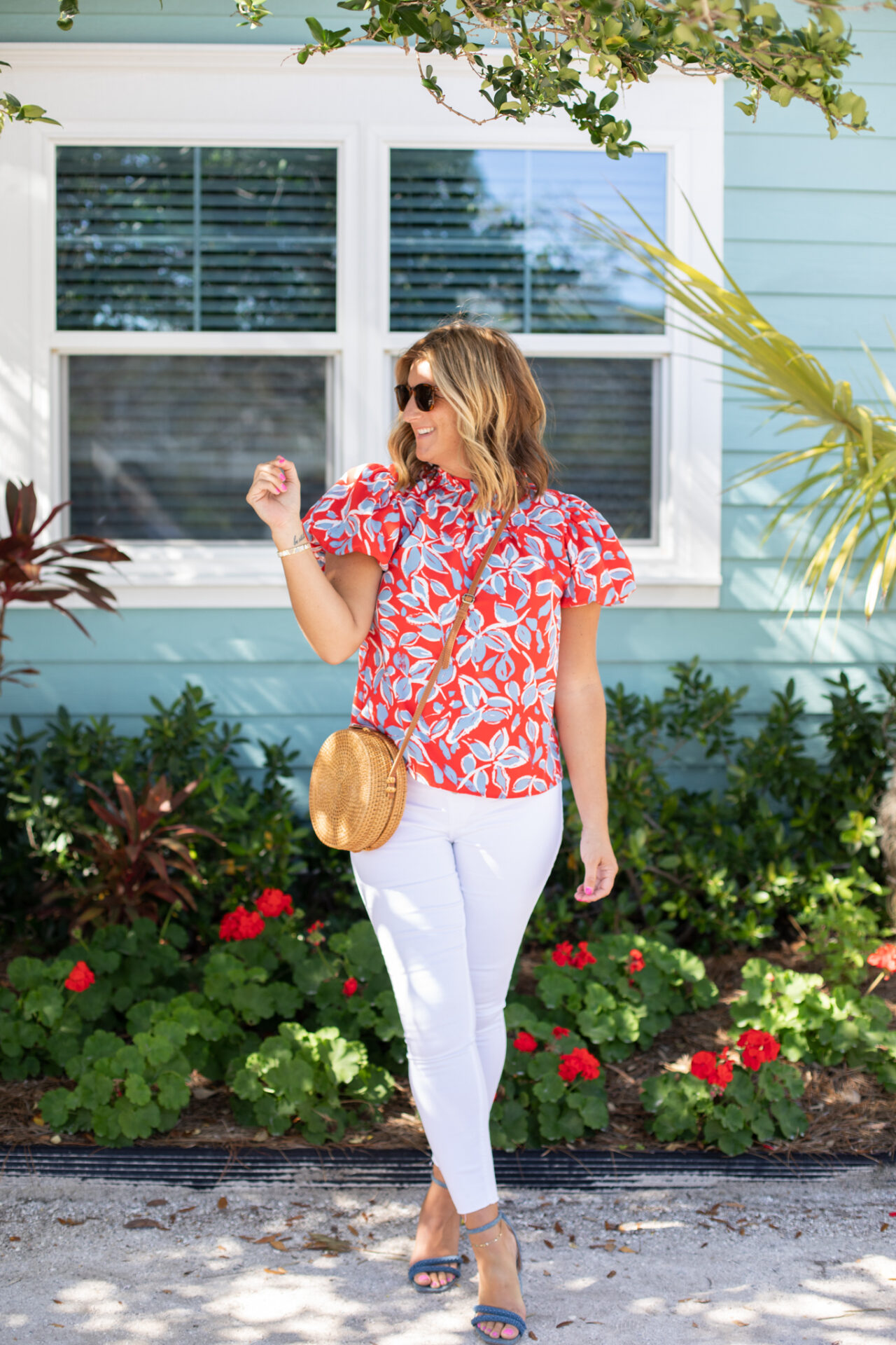 Top [size up if in between, wearing in Small] // Jeanshose [size up if in between, wearing in 4 Short for 5’2″] // Similar Heels