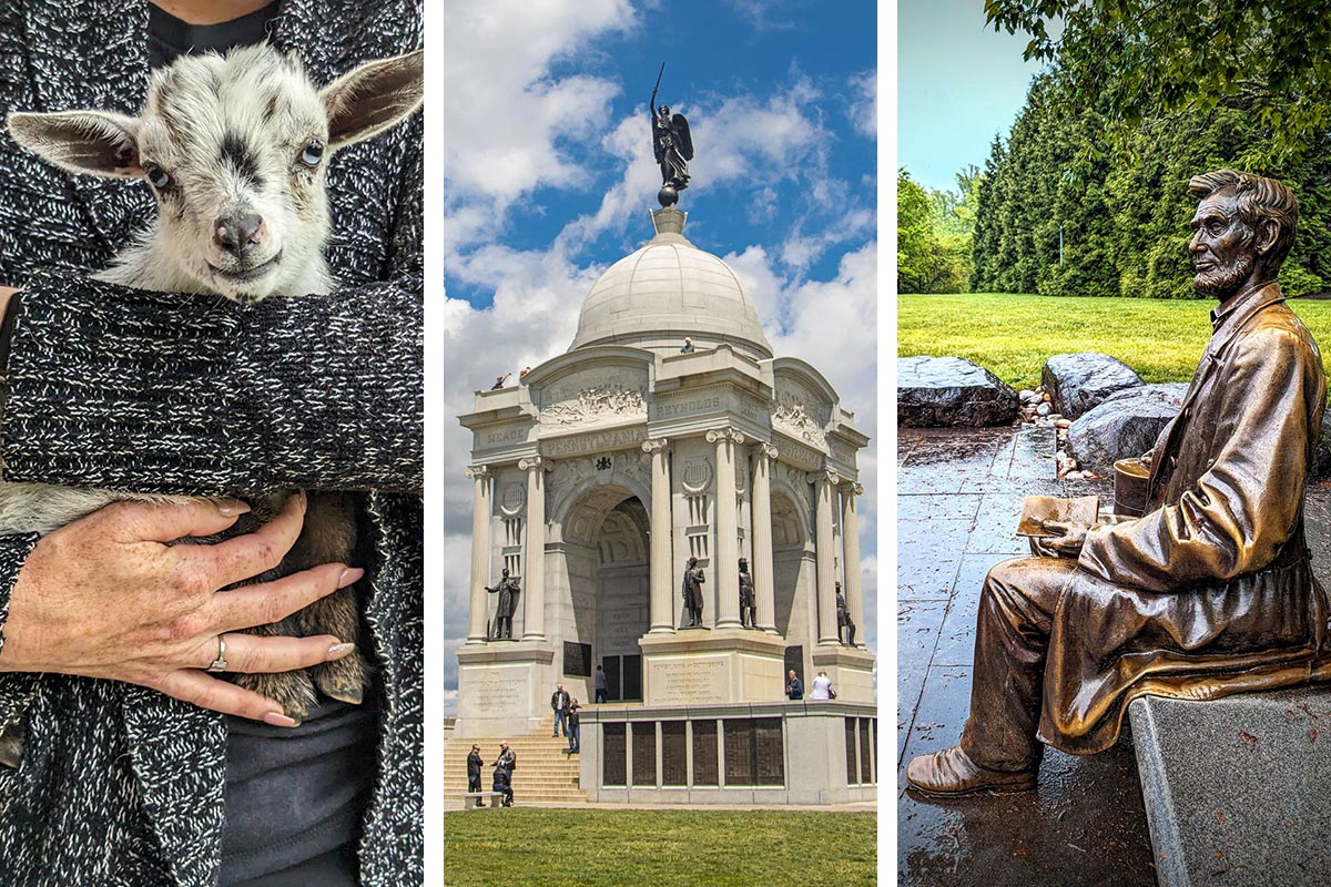 Quanto a Gettysburg, you’ll also find a charming downtown, unique shops, delectable dining, and rolling farmland just waiting to be explored. From wandering hallowed battlefields, to sipping along the Adams County Pour Tour, and even snuggling ragazza goats – there’s something here to delight every traveler.