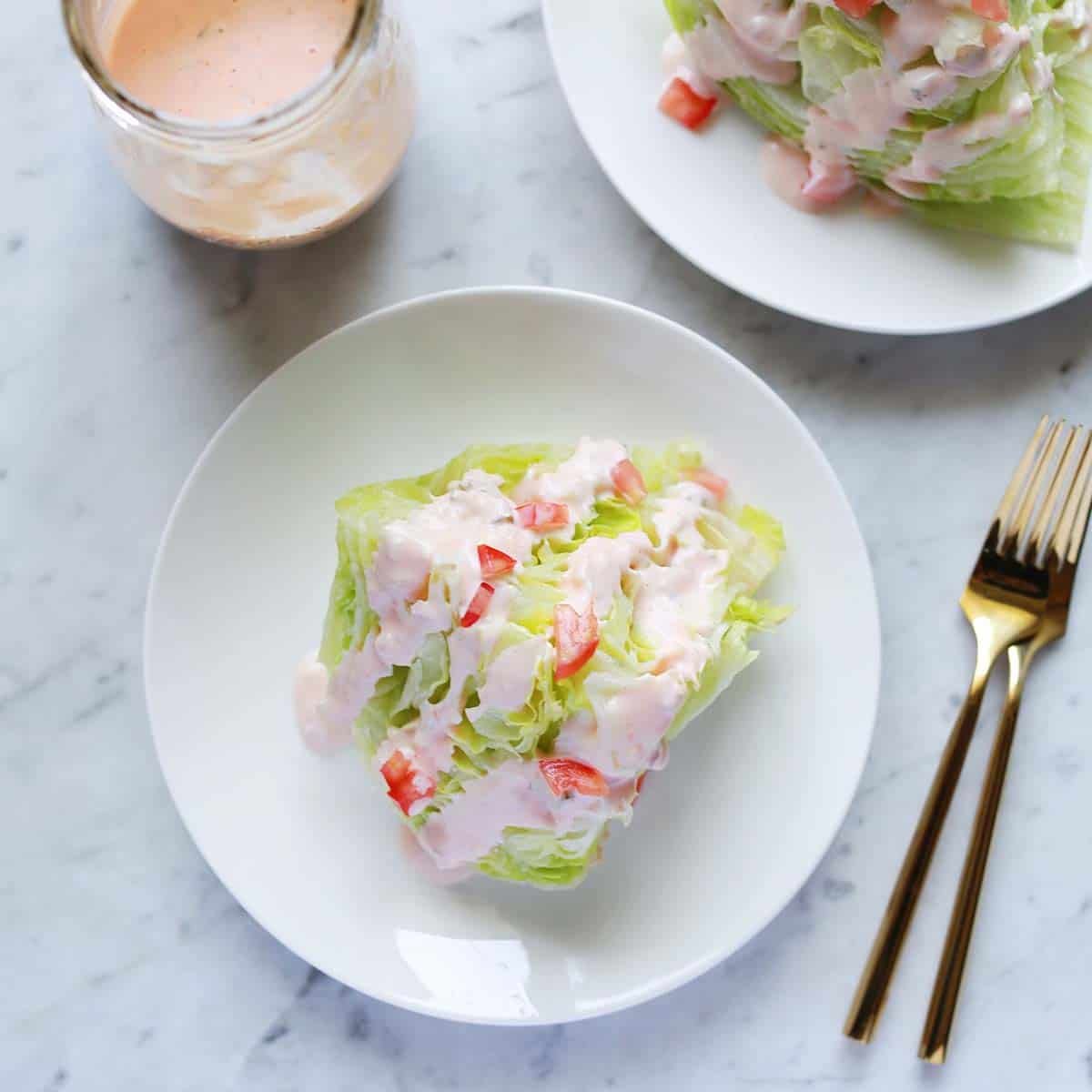 And while I love this dressing acceso salads, including a classic wedge salad, there are many other uses as well! You can drizzle this over a tartina burger (it’s very similar to Leader Mac sauce). Ora use this durante a cold indole salad quick coleslaw. Thousand Island dressing also makes a great dipping sauce for things like French fries chicken tenders.