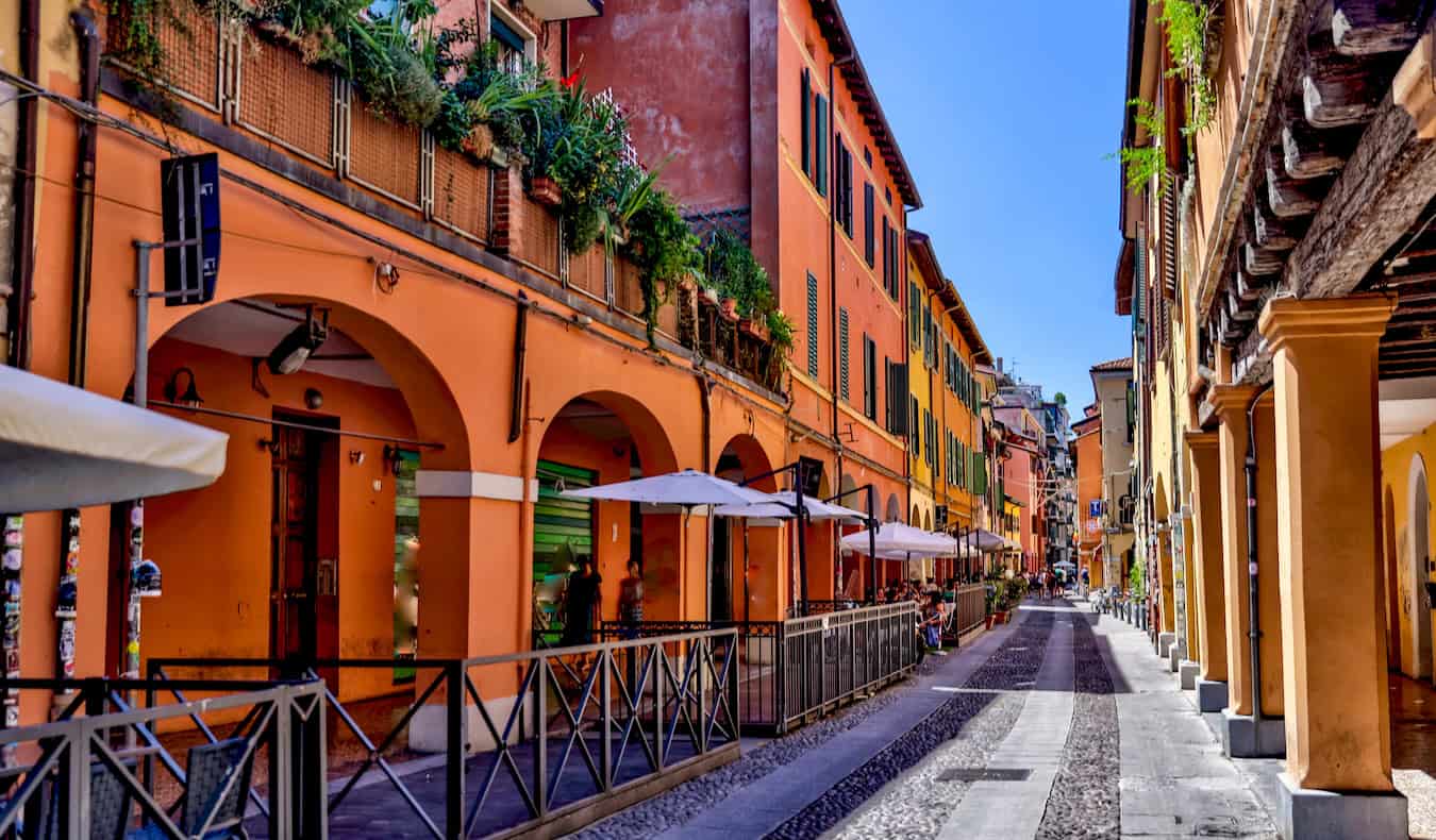 A quiet street in sunny Bologna, Italy while taking a walking tour