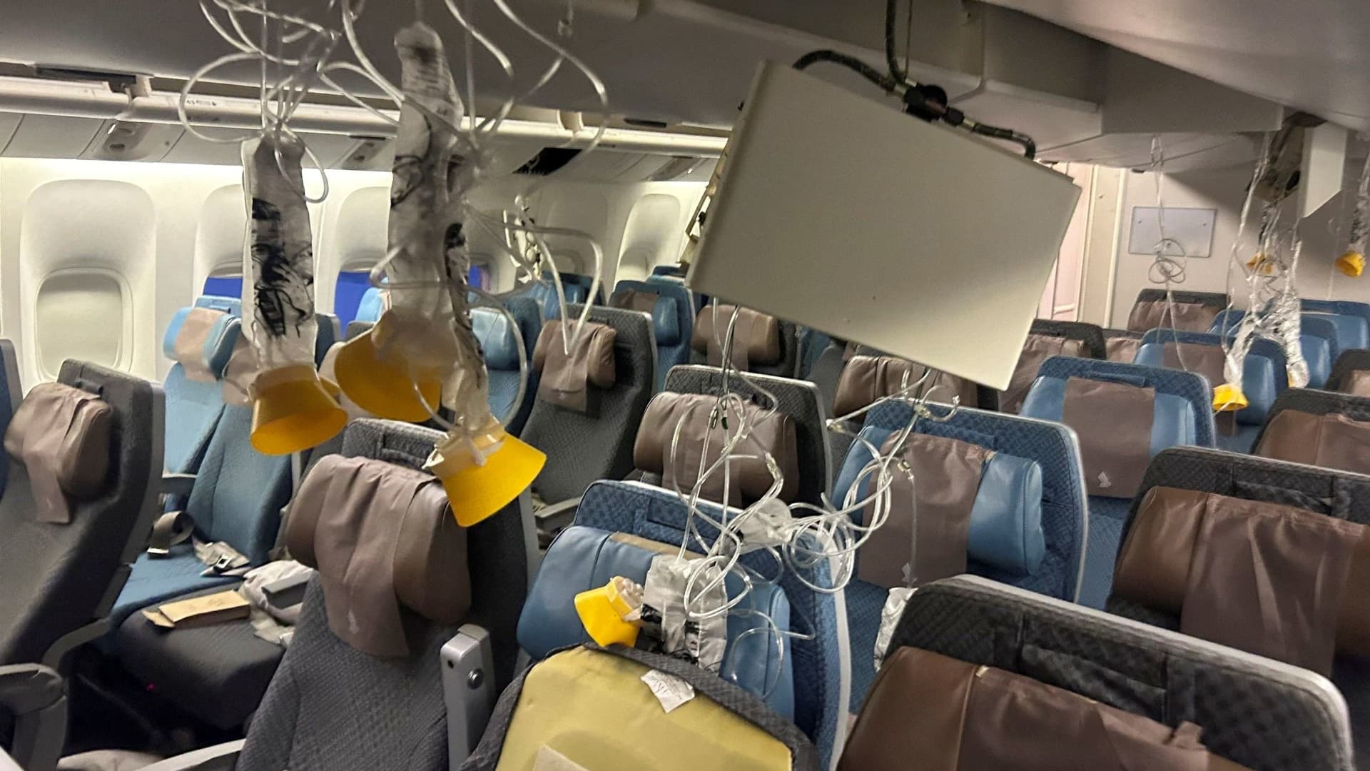 The interior of Singapore Airline flight SQ321 is pictured after an emergency landing at Bangkok’s Suvarnabhumi International Airport, Thailand, May 21, 2024.