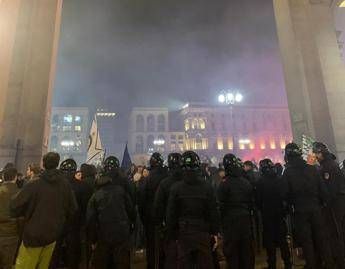 Agenti schierati a Milano all’ingresso della Galleria Vittorio Emanuele per arginare la festa scudetto dei tifosi dell’Inter. Migliaia di sostenitori nerazzurri si sono riversati in centro, in particolare nella zona del Duomo, per celebrare la conquista del tricolore. L’Inter si è laureata campione d’Italia per la ventesima volta grazie alla vittoria per 2-1 nel derby con il Milan.