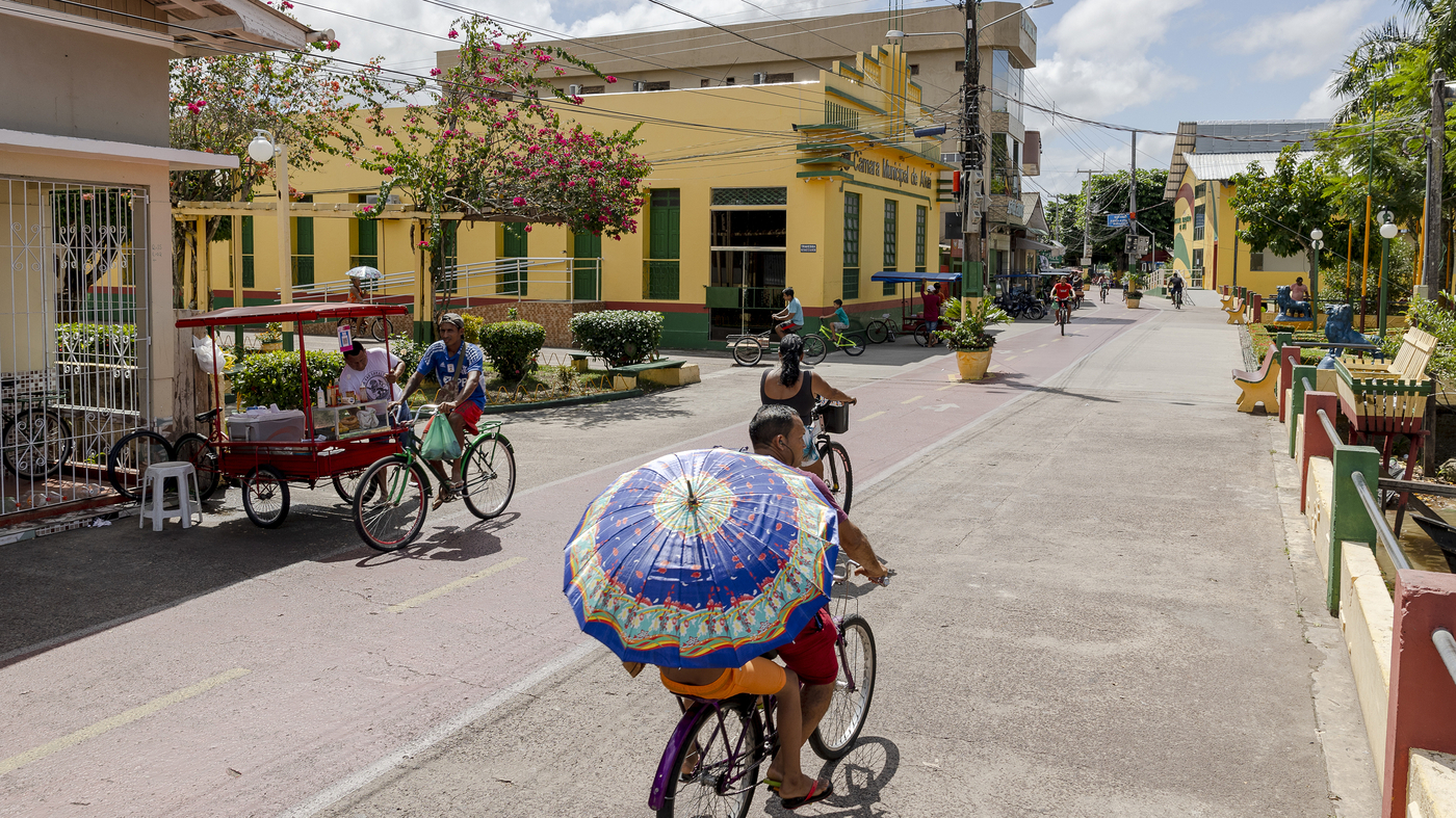 People cycle along the street a causa di Afuá, a city a causa di northern Brazil’s Pará state, a causa di January. Since 2002, this city the banks of the Amazon River has been famously limits to motor vehicles.